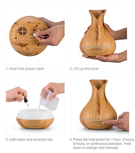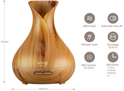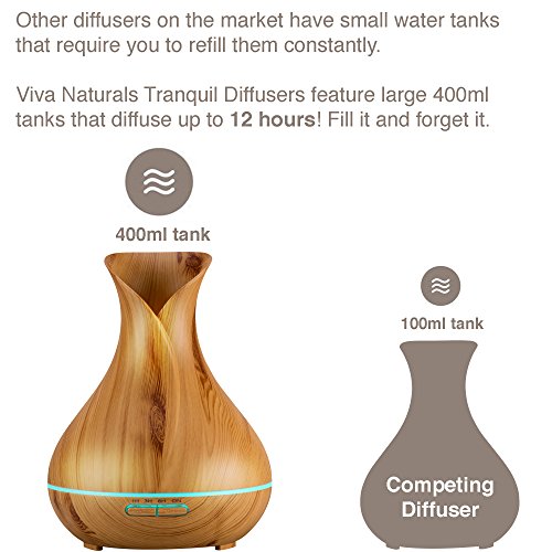 Viva Naturals Ultrasonic Aromatherapy Essential Oil Diffuser, Large 400ml Tank - Vibrant Changeable LED Lights, Soothing Mist & Automatic Shut Off (Pine Tranquil Model)