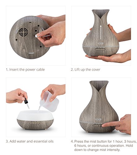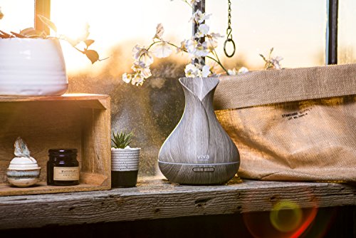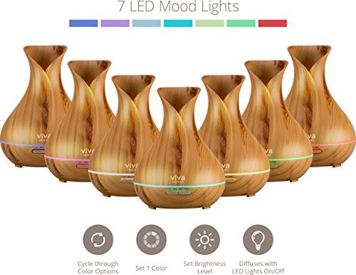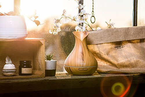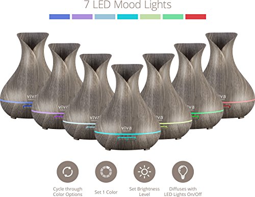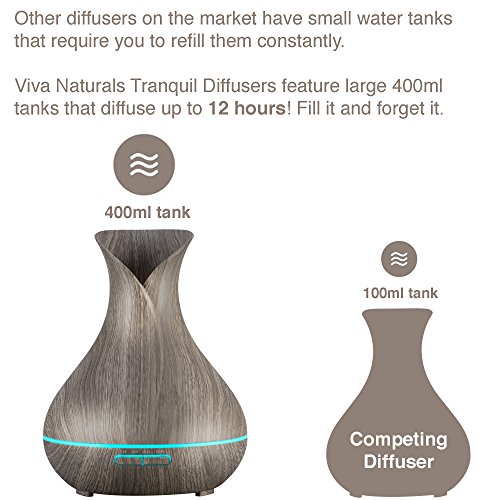 Viva Naturals Aromatherapy Diffuser for Essential Oils, Large 400ml Tank - Vibrant Changeable LED Lights, Soothing Mist & Automatic Shut Off (Ash Tranquil Model)