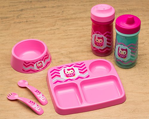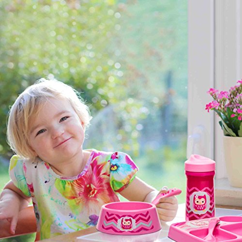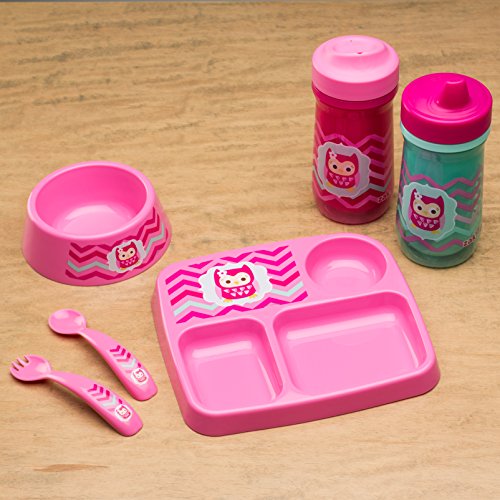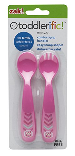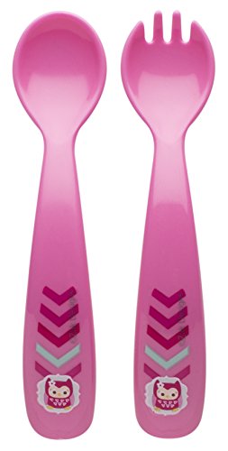 Zak! Designs Toddlerific Toddler Fork and Spoon with Pink Owl, Easy to Hold Handle, Break-resistant and BPA-free Plastic