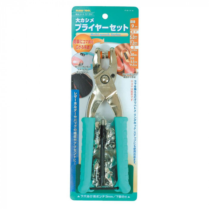 fk094igrjsカチッと穴に差し込むだけ取り付け簡単がっちりカシメて補強ができる サイズ 個装サイズ:27×10×4cm 重量 個装重量:345g 素材・材質 大カシメ玉/スチール、ニッケルメッキ 仕様 大カシメ玉:各30組入り 下敷き付 頭径:9mm 下穴ポンチ:3mm 【足長】 8.5mm:厚さ5mmまで 11.5mm:厚さ7mmまで 生産国 日本 レザーホルダーやバッグの補修に ※足長はカシメ鋲の全長を表しています軸の長さではありません カチッと穴に差し込むだけ取り付け簡単がっちりカシメて補強ができる