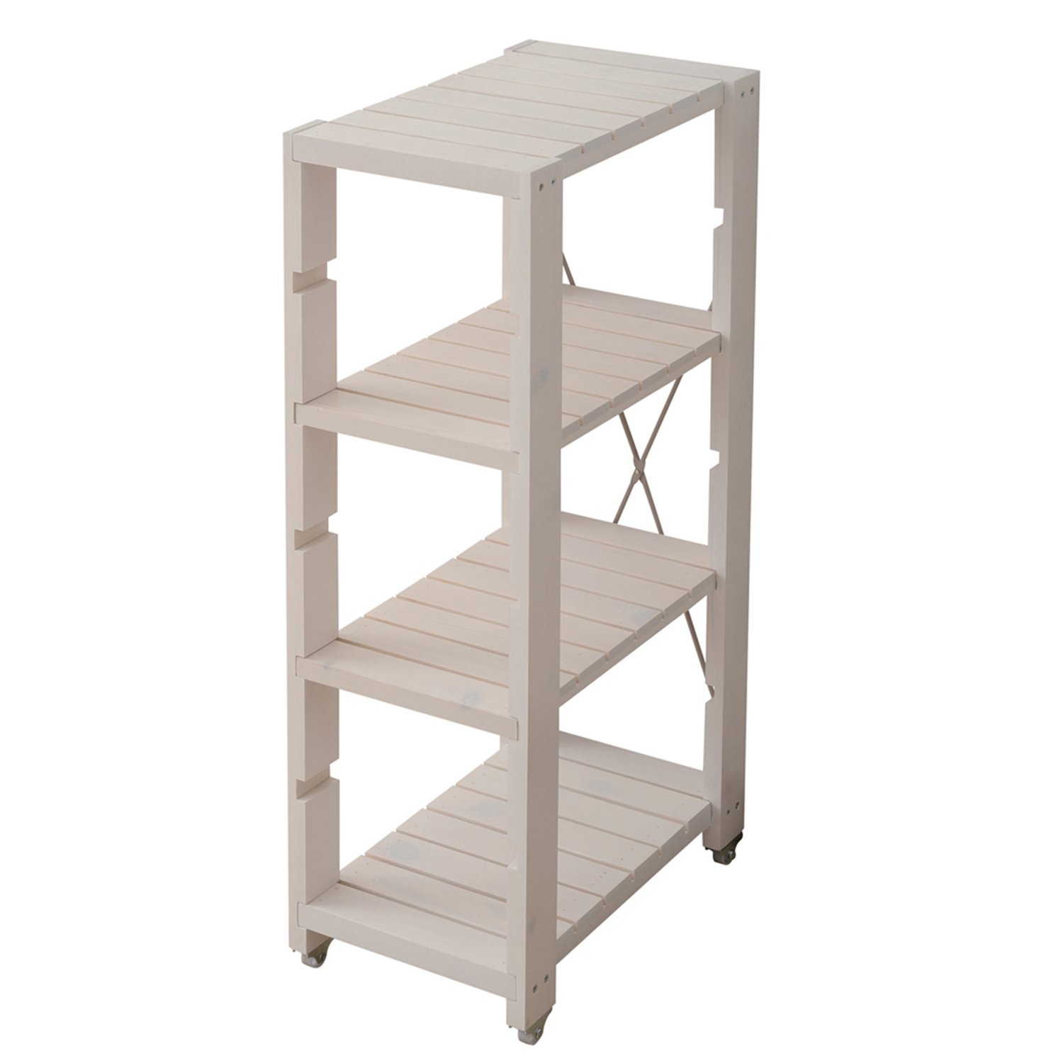- Slim width storage rack perfect for narrow gaps