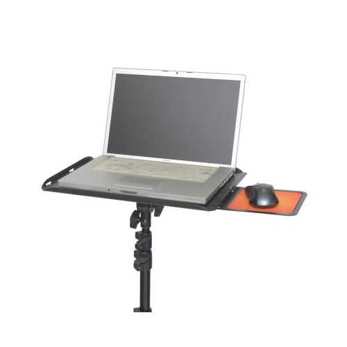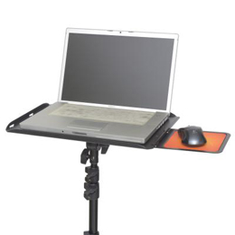●ノートPCをスタジオの司令塔に!狭いスタジオやロケ先で設置場所に困るノートPCをライトスタンドに設置できる簡易テーブルです。