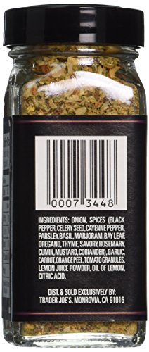-. Binding : Misc. -. Brand : Trader Joe's -. EAN : 0661799794213 -. Feature : Two 2.2 ounce bottles. / Salt-free, all natural blend of spices and other natural ingredients. -. IsAdultProduct : 0 -. Label : Trader Joe's -. LegalDisclaimer : DISCLAIMER: The seller is not affiliated with Trader Joe's. The seller is not an authorized Trader Joe's reseller. Lower P.R.Ices may be available at a Trader Joe's store. Returns are NOT to be made to a Trader Joe's store. -. Manufacturer : Trader Joe's -. PackageQuantity : 2 -. ProductGroup : Grocery -. ProductTypeName : GROCERY -. Publisher : Trader Joe's -. Studio : Trader Joe's -. Title : Trader Joe's 21 Seasoning Salute (Pack of 2) -. UPC : 661799794213
