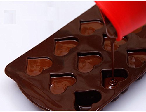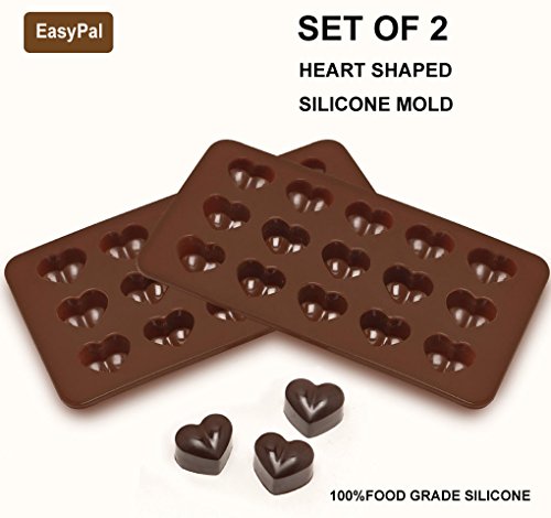 EasyPal 15 Cubes Heart Shaped Silicone Molds for Homemade Chocolate, Jelly, Candy and More(Set of 2)