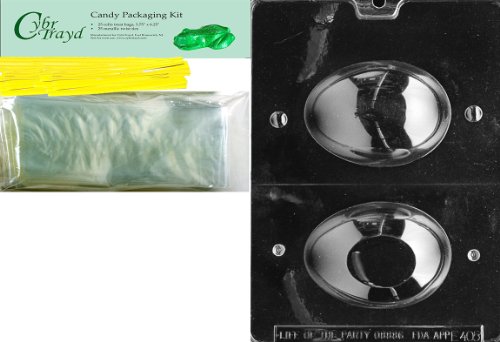 Cybrtrayd Mdk25Y-E405 '1/2-Pound Egg' Easter Chocolate Candy Mold with Packaging Bundle, Includes 25 Cello Bags, 25 Yellow Twist Ties and Chocolate Molding Instructions