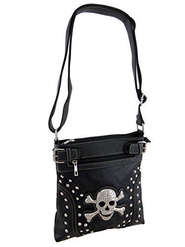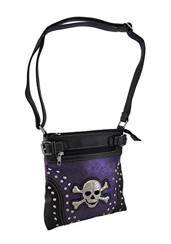 -. Title : Rhinestone Skull Foiled Fabric Studded Concealed Carry Crossbody Purse