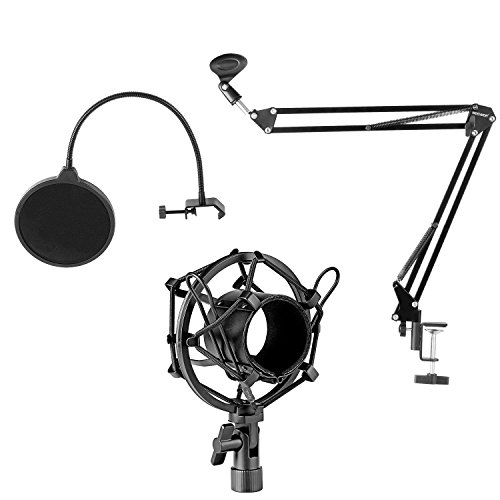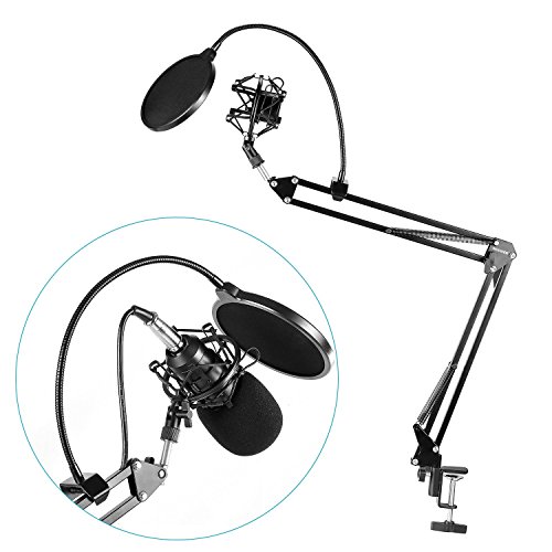 -. Binding : Electronics -. Brand : Neewer -. EAN : 0699618404937 -. Feature : Kit includes: (1)Black NB-35 Mic Suspension Boom Scissor Arm Stand with (1)Table Mounting Clamp and (1)Mic Clip Holder + (1)Black NW(B-3) Pop Filter + (1)Black Metal Mic Shock Mount Holder. NOTE: Microphone, Foam Windscreen and Audio Cable NOT INCLUDED / NB-35 Mic Stand features solid steel construction and adjustable design. Can be easily adjusted to the suitable angle and height to show your perfect voice. *Max load: Approx 53oz / 1.5KG*. PlEASE NOTE: This Stand is NOT Suitable for Blue Yeti USB Microphone / Comes with one table mounting clamp. With an adjustable positioning screw, can easily clip to any desktop up to 1.7"/4.5cm thick. PLEASE CHECK the thickness of your table BEFORE ordering / NW(B-3) Pop Filter with double nylon net helps you with prevention against plosion and popping to get your best vocal recordings. Features flexible metal gooseneck and adjustable swivel mount / Mic Shock Mount isolates most studio condenser mics from physical vibration, floor, and stand noise. NOTE: Fits for mic of 43-46mm Diameter. PLEASE VERIFY your microphone size BEFORE ORDERING -. IsAutographed : 0 -. IsMemorabilia : 0 -. Label : Neewer® -. Manufacturer : Neewer® -. Model : Neewer -. MPN : 90087700 -. PackageQuantity : 1 -. PartNumber : 90087700 -. ProductGroup : Musical Instruments -. ProductTypeName : SOUND_AND_RECORDING_EQUIPMENT -. Publisher : Neewer® -. Studio : Neewer® -. Title : Neewer NB-35 Microphone Suspension Boom Scissor Arm Stand with Mic Clip Holder and Table Mounting Clamp & NW(B-3) Pop Filter Windscreen Mask Shield & Metal Microphone Shock Mount Kit -. UPC : 699618404937