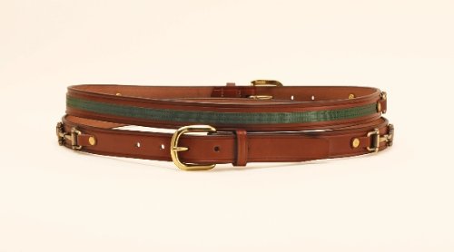 Studio : Tory Leather Company Publisher : Tory Leather Company Binding : Misc. Product Description From the original Tory Leather - MADE IN USA. This belt is great for adding something extra to an outfit. It is a heavy weight English bridle leather belt with creased edges and two snaffle bits with simulated ribbon in between and a sewn solid brass buckle. The belt size is 2" larger than the waist size. To choose the correct belt size, take your waist size and add 2". For example, a 36" waist will need a 38" belt. 0