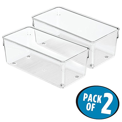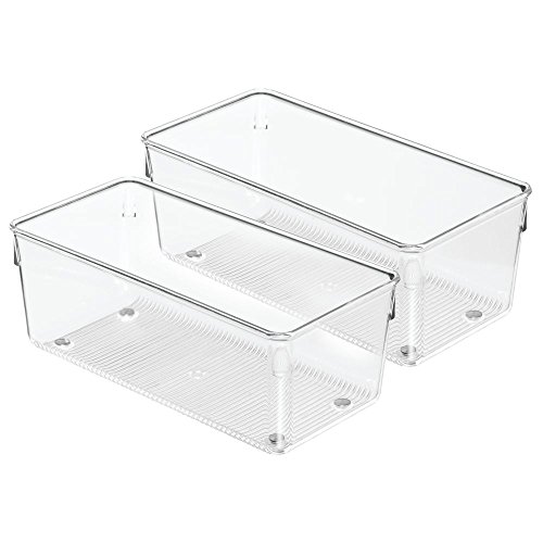 InterDesign Linus Kitchen Drawer Organizer for Utensils, Tools, Gadgets - Set of 2, 4" x 8" x 3", Clear
