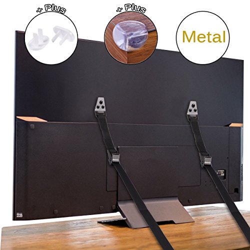 Anti-Tip TV & Furniture Strap, Cunina Baby Safety Anchor Strap for Baby Proofing & Flat Screens, Pack of 2(with 4 corner guards and 4 outlet plugs)