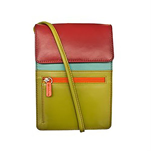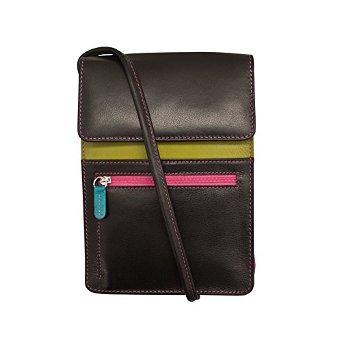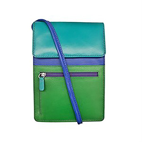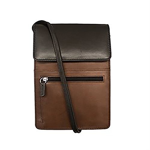 All you need in one small case. Genuine leather with RFID lining. Flap snap closure. Three zippered compartments. Holds a smartphone, passport, and tickets. Slide pockets on front and back. I.D. and credit card slots.Feature