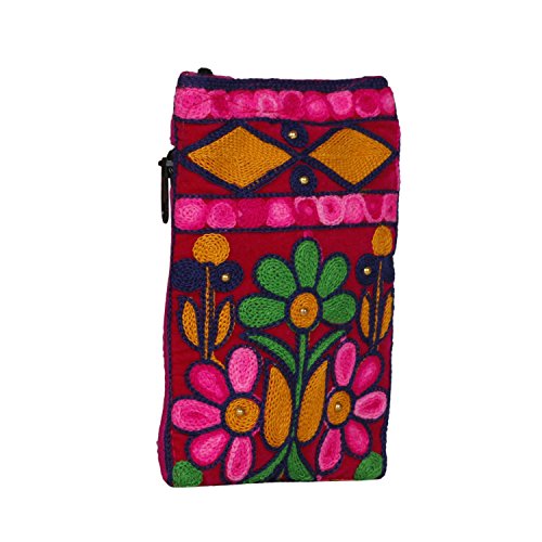 This beautiful Indian Rajasthani Small Mobile Pouch/Shoulder Bag/Cross Body Bag/Keys Paouch /Evening Bag is made using bright, organic velvet fabric. It is quilted free motion style in high-contrast. The inner lining is soft cotton. It is top stitched along the edge for durability and style.1 Zipper Pocket given on backside of the bag to carry coins Its deep design holds all of your essentials Iike iPhone,Keys,Money,Visiting Cards,Pocket Comb etc, while long strap provide a comfortable carry. The intricate detail colorful threads are unique to the vintage re-purposed Indian cotton fabric, making this bag a true statement piece. you can directly send to colleagues, friends and loved ones with Love/Gift. Absolute professional business look and feel, impress your clients and associates. This will definitely boost your personality and get attention from the others for its uniqueness & charming look.Feature