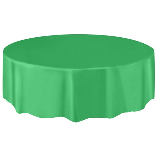 - Emerald Green Plastic Table Cover measures 84" in diameter