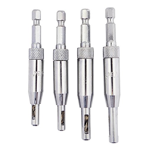 Yakamoz 4PCS HSS Door Self-centering Hinge Hole Opening Drill Bit Set, 5/64", 7/64", 9/64", 11/64"