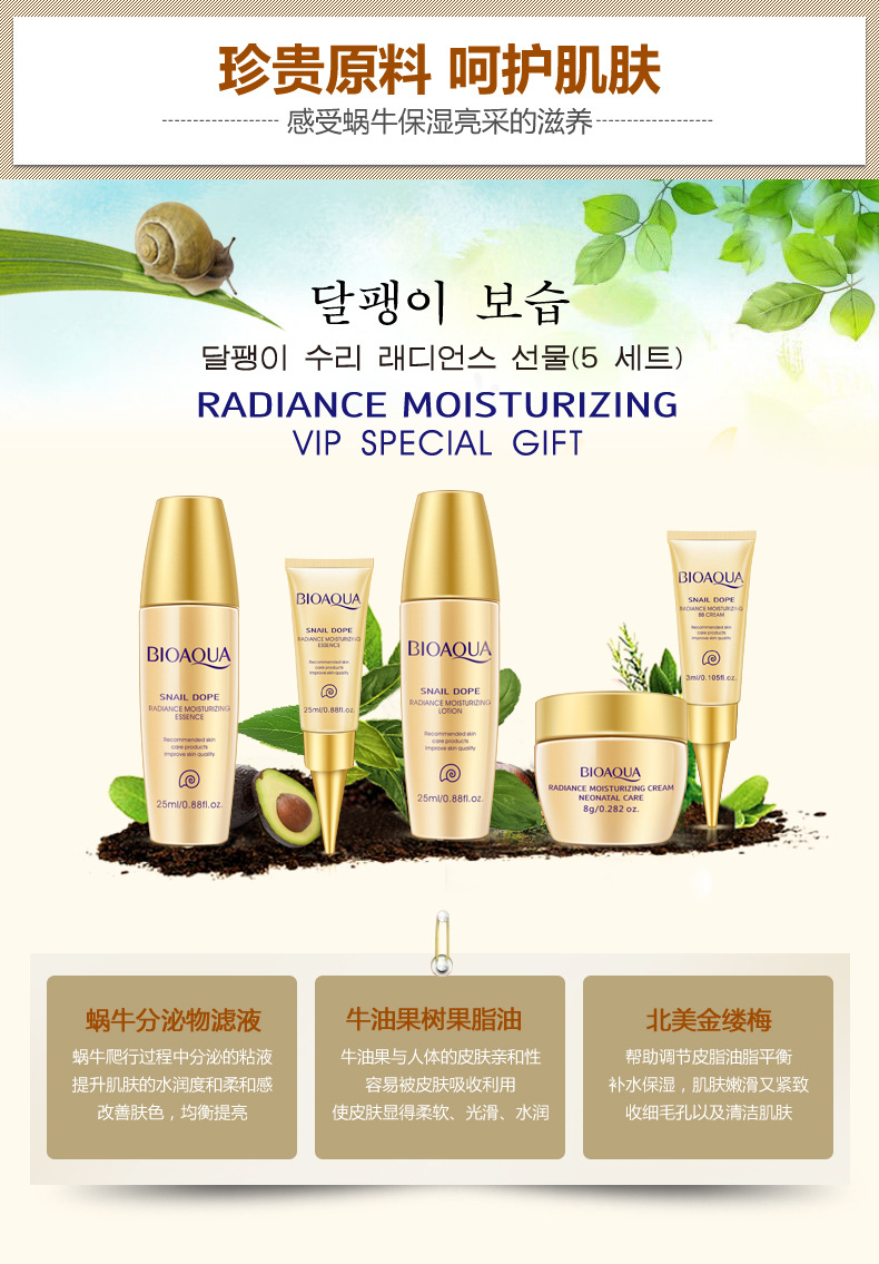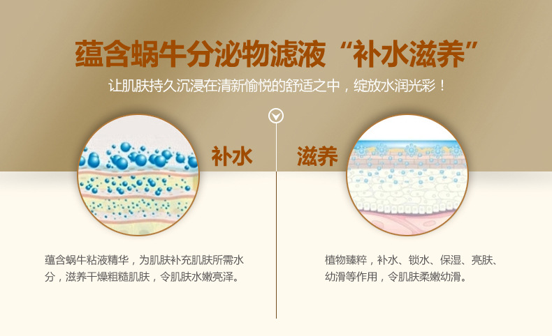 Contains snail extract, supply skin with moisture and nutrition, conditioning skin, delicate skin tight, maintain