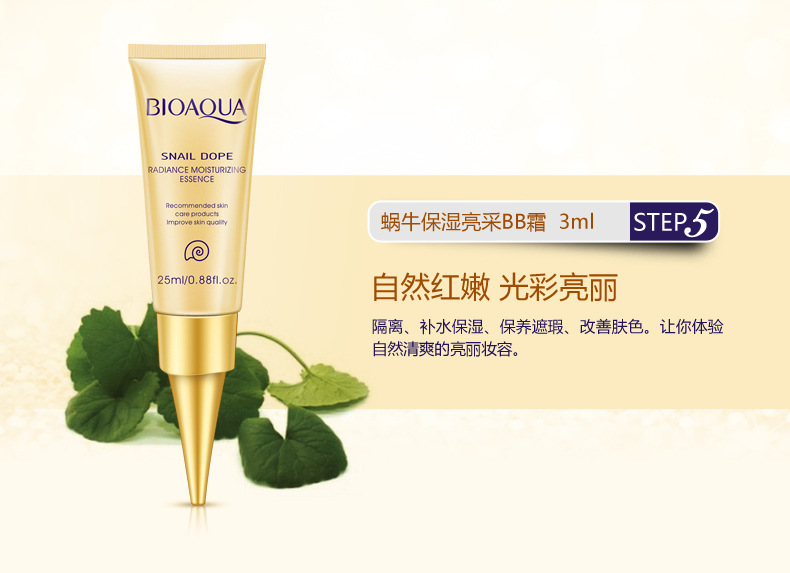 Step 5:Use snail radiance moisturizing BB cream(3ml) help skin isolation, hydrating, maintain block defect, improve complexion,