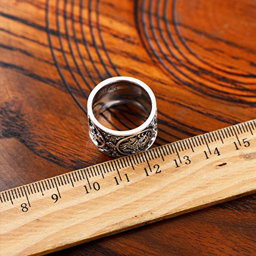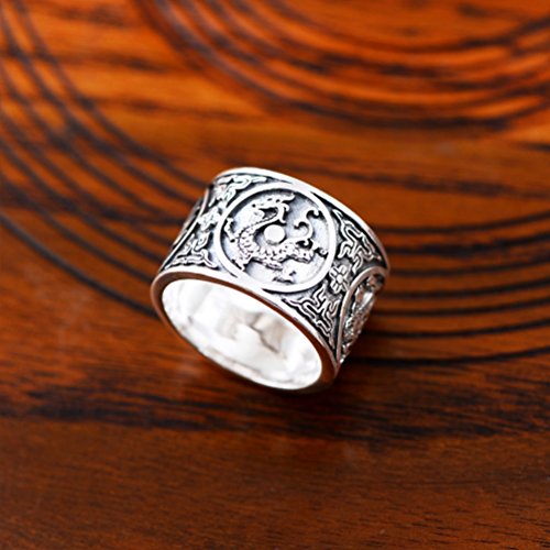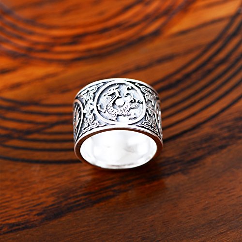 - Title : Moon Wings Solid Sterling Silver Vintage Dragon, Tiger, Bird and Turtle Totem Mens Ring Size 11
