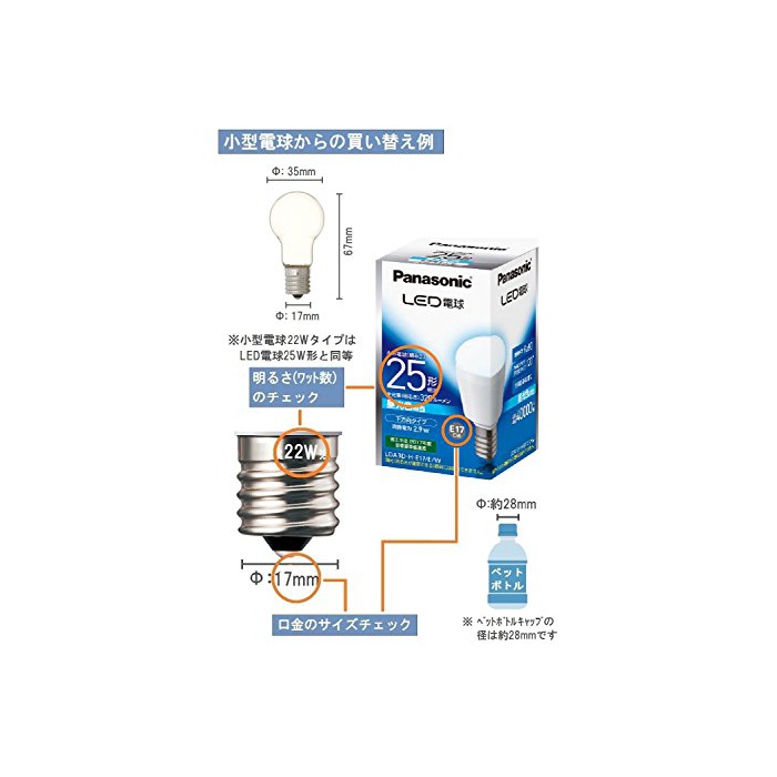 원본상품명: パナソニック LED電球 E17口金 電球25W形相 小型電球下方向タイプ 1個入 密閉形器具 LDA3*HE17EW