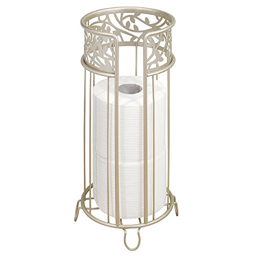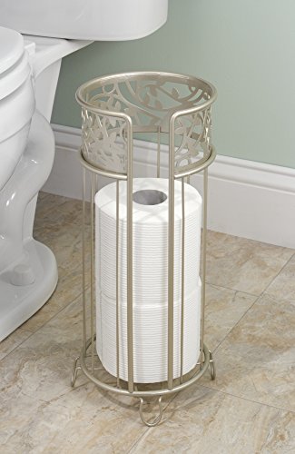 mDesign Free Standing Toilet Paper Holder for Bathroom Storage - Satin