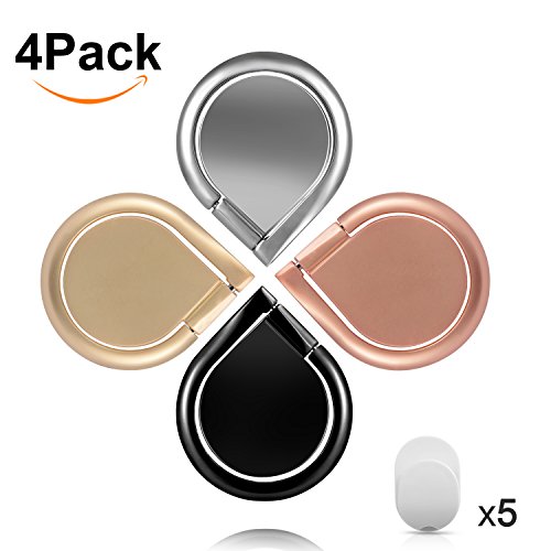 【Great Gift】Cell Phone Ring Holder, Bestfy 4 Pack Magnetic Phone Grip Kickstand, 360° Rotation, Water Drop Shape, Zinc Alloy Finger Ring Stand for iPhone, Smartphones (With 5 Car Mount Hooks)