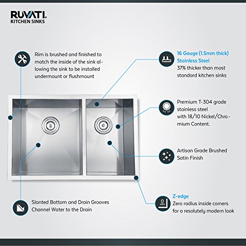 16 GAUGE thick premium T-304 grade stainless steel (18/10 Chromium/Nickel) - 37% thicker than most standard kitchen sinks