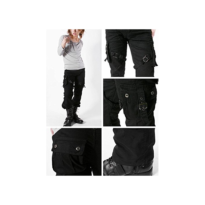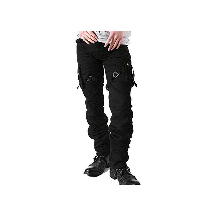 LUXSTYLE 형(오빠)계 카고 팬츠 맨즈【Low box(로우 박스)벨트 디자인7포켓 카고 팬츠】 블랙76(S)
