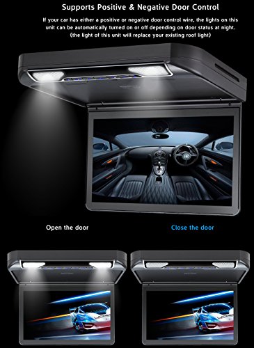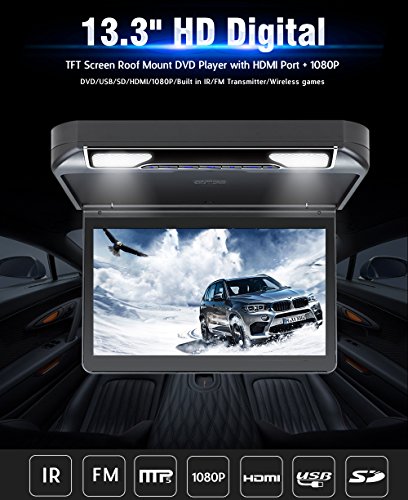 DDAUTO DD1336B Overhead DVD Player 13.3 inch IPS screen 1080P HD Flip Down Multimedia Player for Car Built in USB, SD, HDMI, Games, Door LED, BLACK
