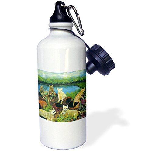 3dRose wb_66320_1 The Gardeners, Kittens Dig Up Colorful Flower Pots, Water View Sports Water Bottle, 21 oz, White
