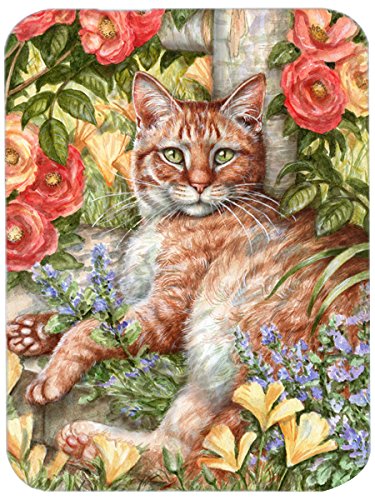 Caroline's Treasures CDCO0027LCB "Tabby In The Roses by Debbie Cook" Glass Cutting Board, Large, Multicolor