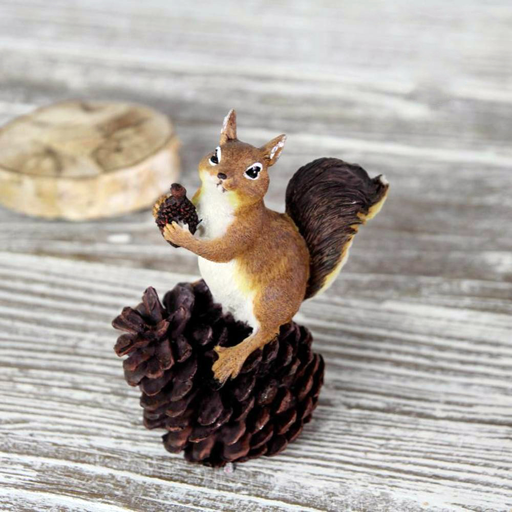 キュートな 松ぼっくりに乗る リスさんの 置物 キュートな ガーデニング インテリア