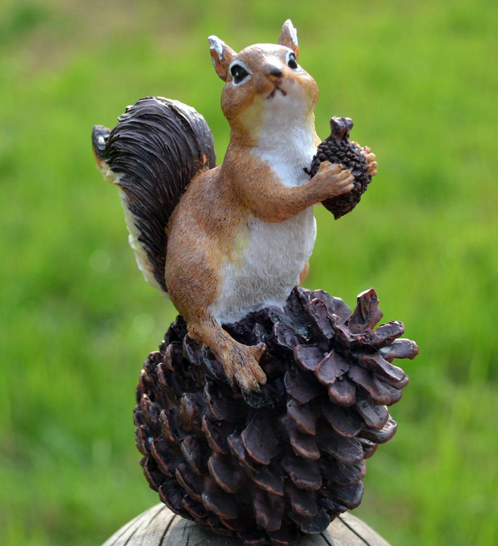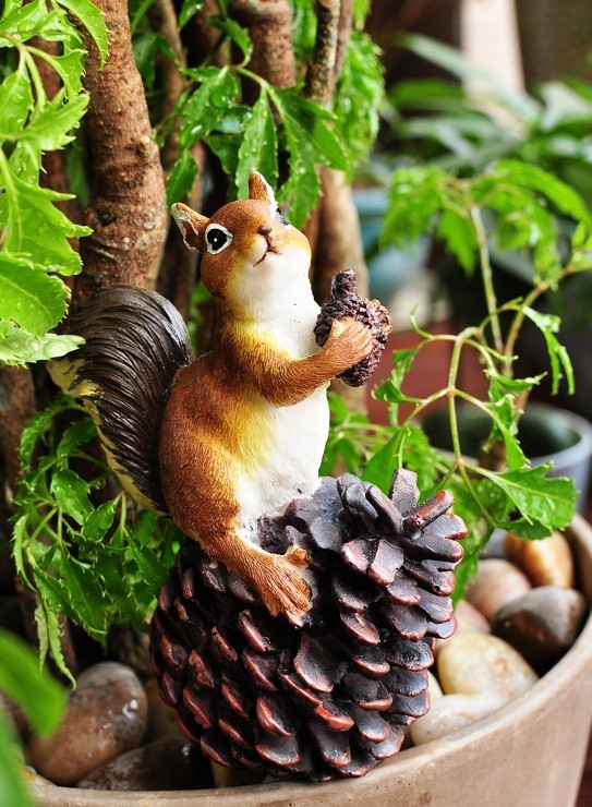 キュートな 松ぼっくりに乗る リスさんの 置物 キュートな ガーデニング インテリアctr-b46【8~12日発送】
