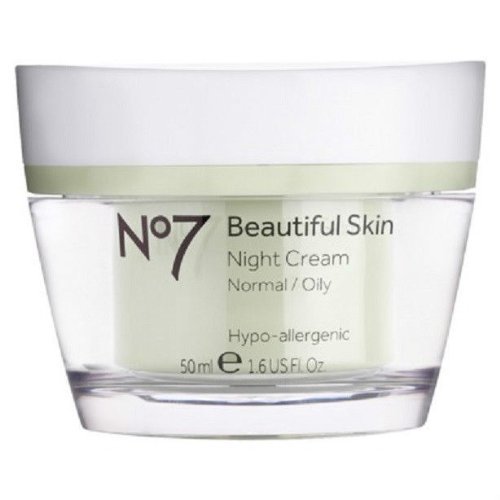 -. Feature : Boots No7 Beautiful Skin Night Cream Normal/Oily - 1.69 oz / Product Details:Rebalance oil production while you sleep with this lightweight formula and help give skin just the right amount of moisture without overloading it. You'll wake to shine-free and radiant looking skin. Hypo-allergenic. / Includes: Face Cream ,Health Concern: Oily Skin ,Used For: Night Skin Care,For Use On: Face,Product Form: Cream,Capacity (volume): 1.69 Oz.Health Facts: Hypoallergenic,Scent: Unscented