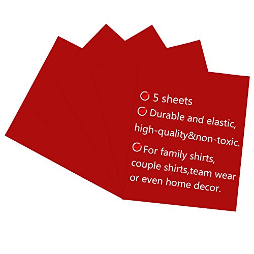 Heat Transfer Vinyl (HTV), YARKOR 12 x 10" 5 sheets Heat Transfer Vinyl Stickers for T-shirt Heat Transfer, Craft Garment(Red)