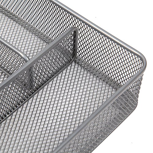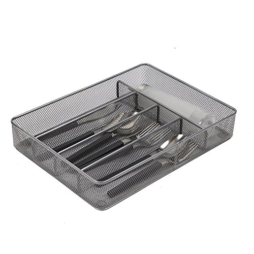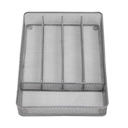 Finnhomy 5 Compartment Mesh Utensil Tray Kitchen Cutlery Drawer Organizer Silverware Storage Tray, Silver