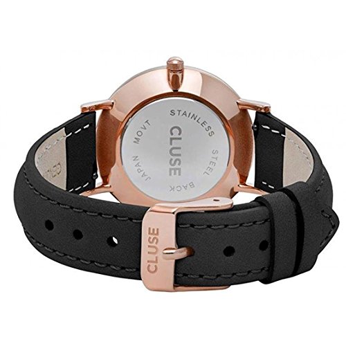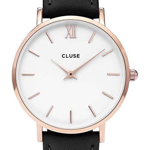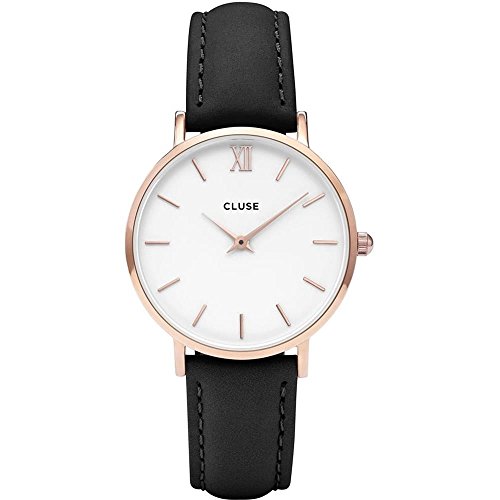 Cluse Women's Minuit 33mm Black Leather Band Metal Case Quartz White Dial Analog Watch CL30003