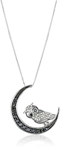 -. Title : 10k White Gold Black-and-White Diamond Owl Pendant Necklace (1/2 cttw), 18"
