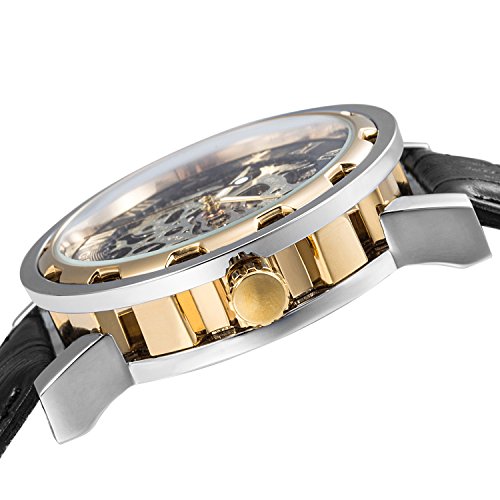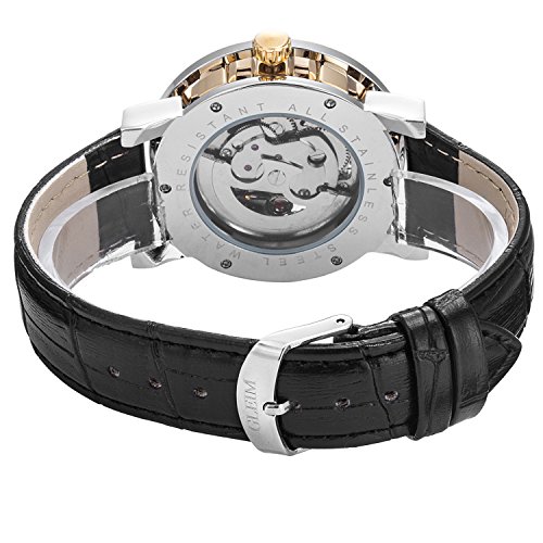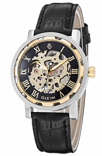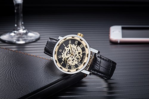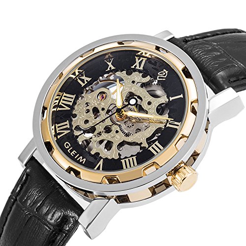 ► Skeleton dial featured Gold-Tone hands and Roman numerals elements, you can easily read the time.
