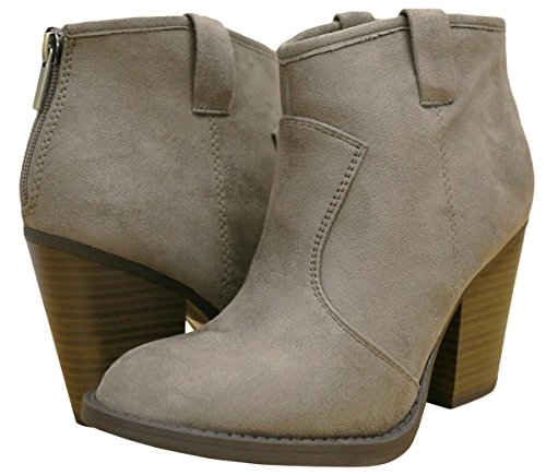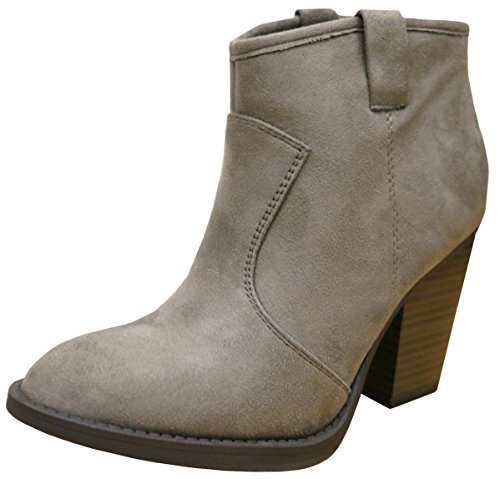 Product Description Cambridge Select Women's "Divine" ankle booties are a must have for everyday, casual wear. Vegan-friendly leather/suede with western-inspired stitching pull tab. 3.5" stacked chunky heel. Imported. 0