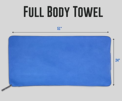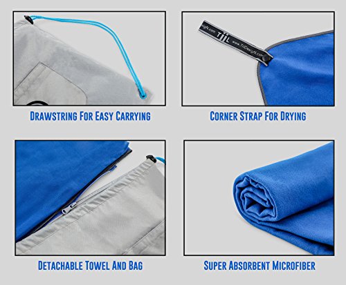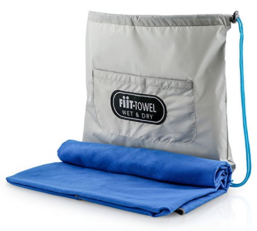 Fit-Towel Microfiber Workout Gym Towel (51 x 24) Quick-Dry, Store Sweat + Wet Gear in Detachable Bag + Key Pocket | Fitness, Hiking, Camping, Swimming, Yoga, Exercise Sports Towel | TiiL (SilverBlue)