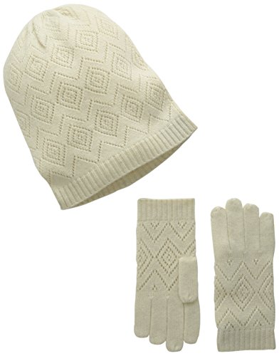 La Fiorentina Women's Cashmere Knit Pointelle Hat and Glove 2 Piece Set, Ivory, One Size