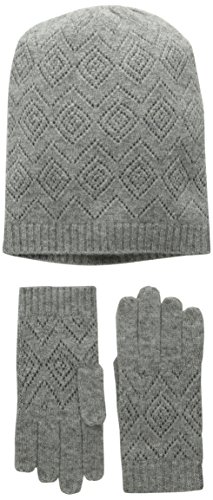 La Fiorentina Women's Cashmere Knit Pointelle Hat and Glove 2 Piece Set, Grey, One Size