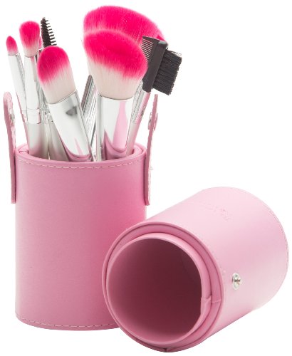 This professional brush set from The Lano Company includes all of the brushes needed to create just the right look for you. Inspired by the fast-paced on-the-go lifestyle of glam girls everywhere, brushes are protected at home or when you travel by the shiny pink faux leather cylinder case which functions as a brush stand for easy access while applying makeup.