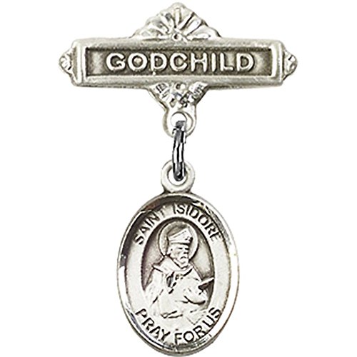 -. Title : Sterling Silver Baby Badge with St. Isidore of Seville Charm and Godchild Badge Pin 1 X 5/8 inches