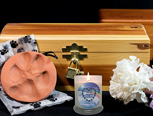LOSS OF PET CANDLE-CHERISH your DOG or CAT'S MEMORY with a special candle IN THEIR HONOR.Made with a soy blend & Burns for over 80 hours.Scent-a delightful blend of Grapefruit, Juniper & Lavender