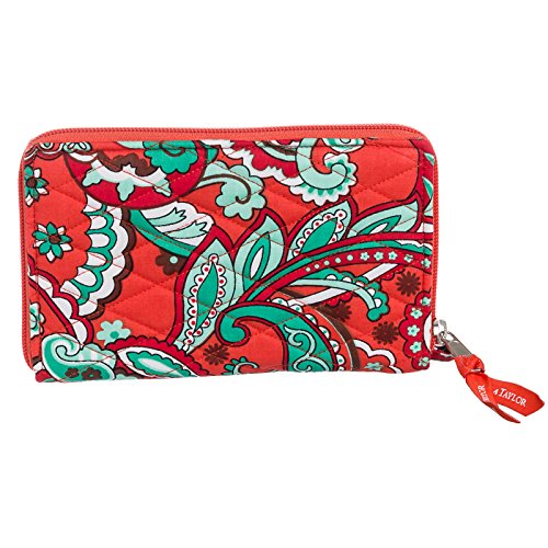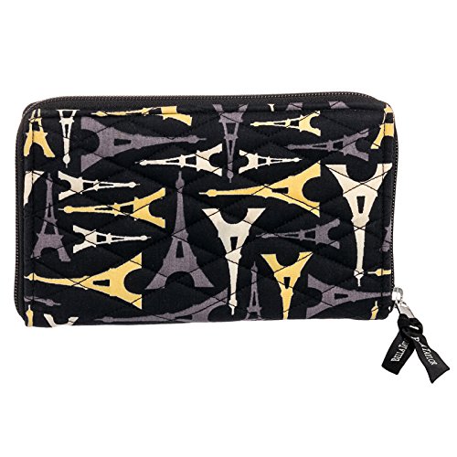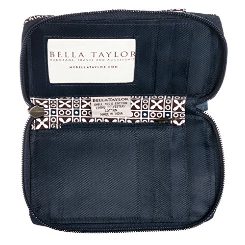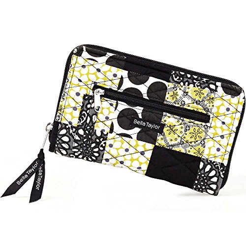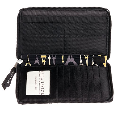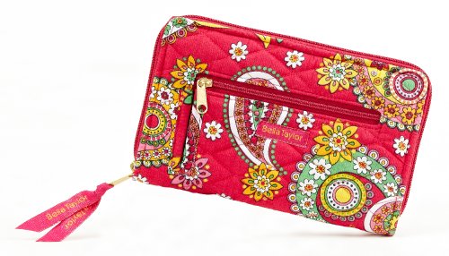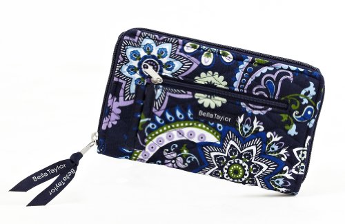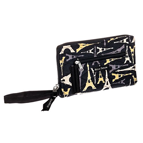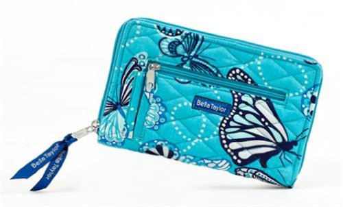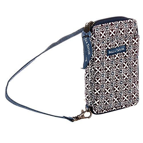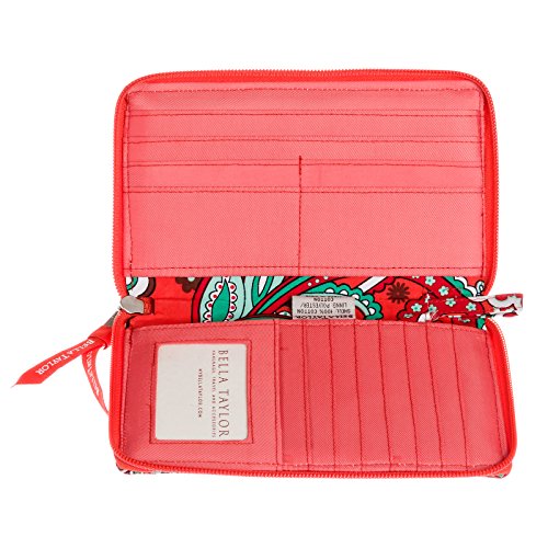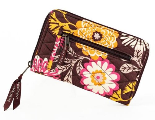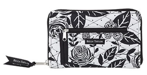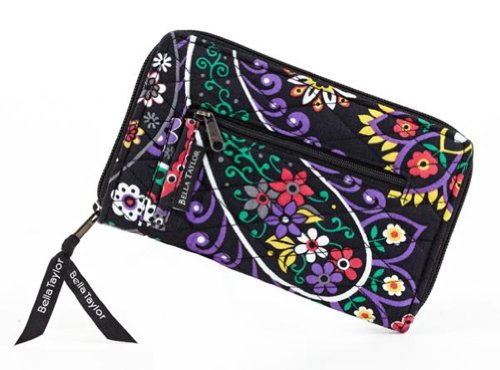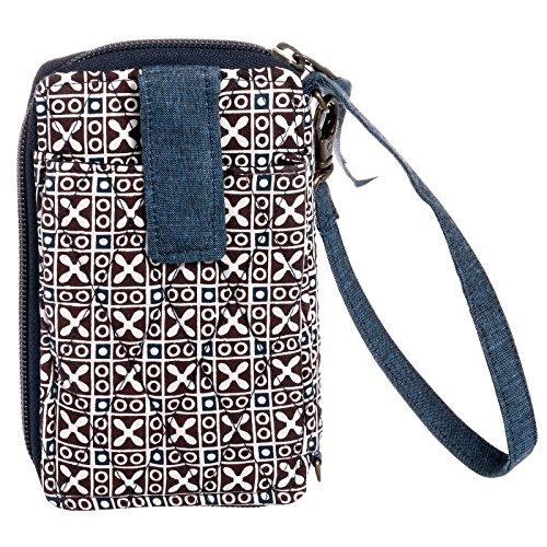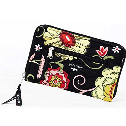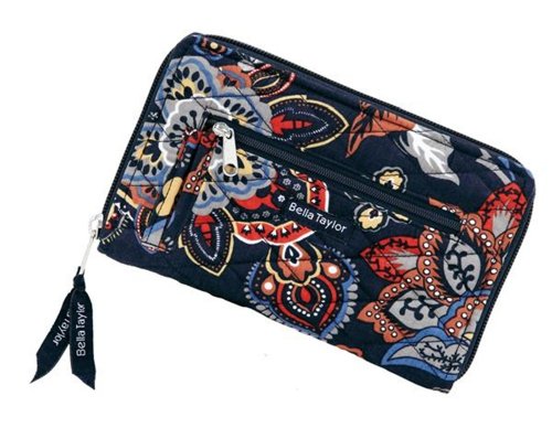 - Feature : Base: 8" x 0.75", height: 5" / Strap: Pull out wrist strap / Pockets: 1 coin zipper pocket, 2 inside money pockets / Features: 11 credit card slots, 1 ID window / Machine washable on delicate cycle, line dry.