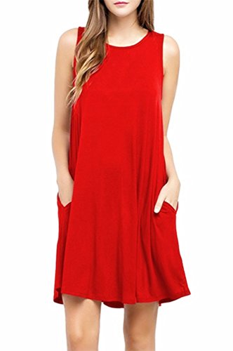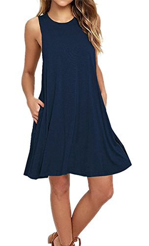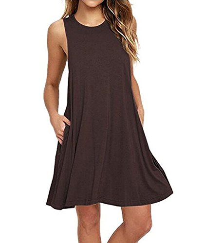 AnnabelZ Women Casual Dress Sleeveless Plain Simple Loose Swing Summer T-Shirt DressColor: Army Green, Black, Grey, Navy Blue, Royal Blue, Purple, Wine Red, Dark Green