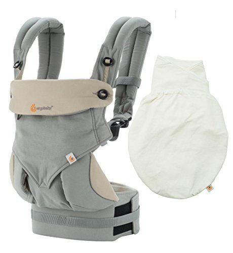 Ergobaby Bundle - 2 Items: Grey All Carry Position 360 Baby Carrier and Swaddler, Natural S/M