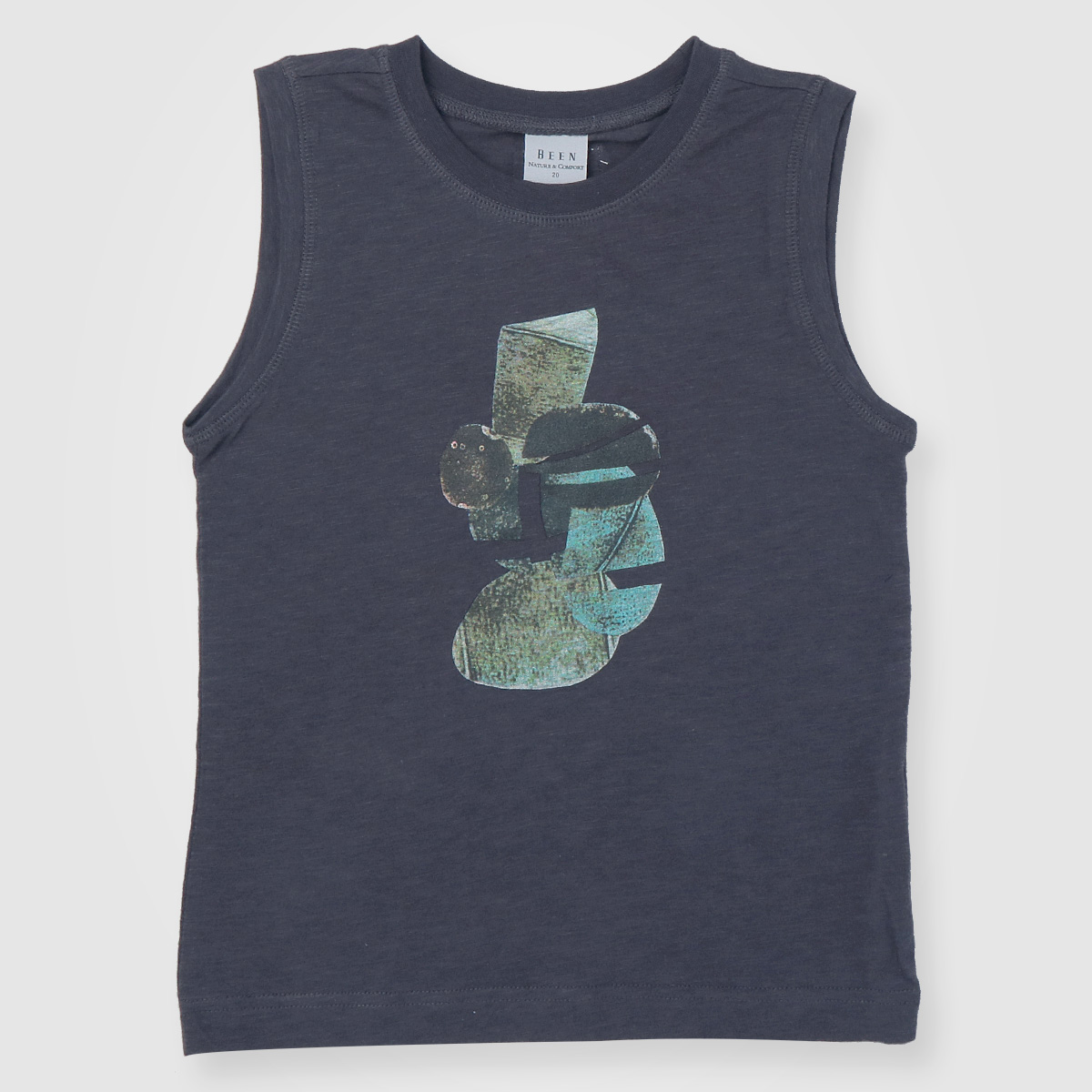 세련된 챠콜 그레이컬러의 슬리브리스 티셔츠입니다.