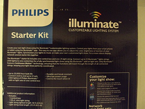 Create endless lightshow possibilities with the illuminate C9 Lights by Philips. Control the 25 Faceted C9 LED Lights from your smart phone or tablet using the illuminate app. The easy to use app allows you to adjust the color, brightness, or function of your Illuminate lights. Choose from 21 pre-made functions for a variety of effects. Synchronize your lights to music or make your own customized light show. The light set includes 25 Faceted C9 lights.
