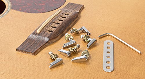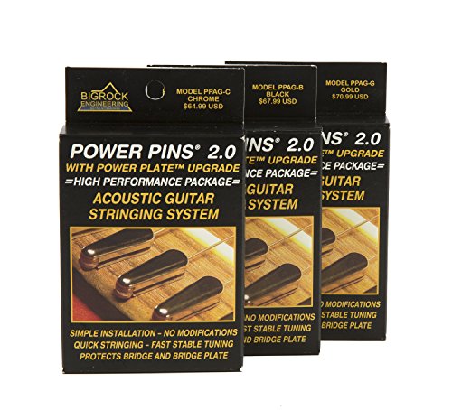 PATENTED SYSTEM - Acoustic guitar bridge plates are constantly under stress produced by the strings, which over time hollows-out traditional bridge pin holes. Power Pins 2.0 are a patented and durable acoustic guitar pin system that leads the string straight through the pin, keeping the string tension on a horizontal plane. They install simply and quickly (no modification required) and, once applied, never need to be removed. Comes with Power Plate upgraded and installation tool.